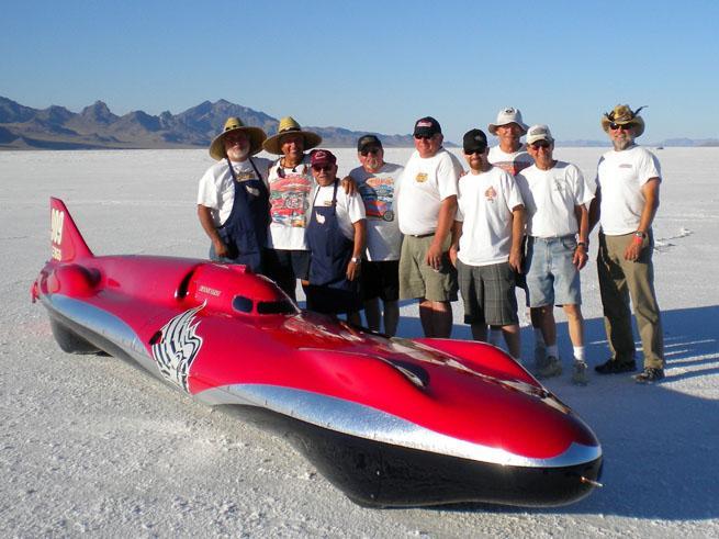Dennis Varni's World Record Holding Bonneville Streamliner is an exercise in coolness. Powered by a twin-turbocharged Ryan Falconer Racing Engines L6, 259cid with1300HP. Dennis assembled an amazing team of builders. This team set a world record each year they attended Bonneville Speedweek.